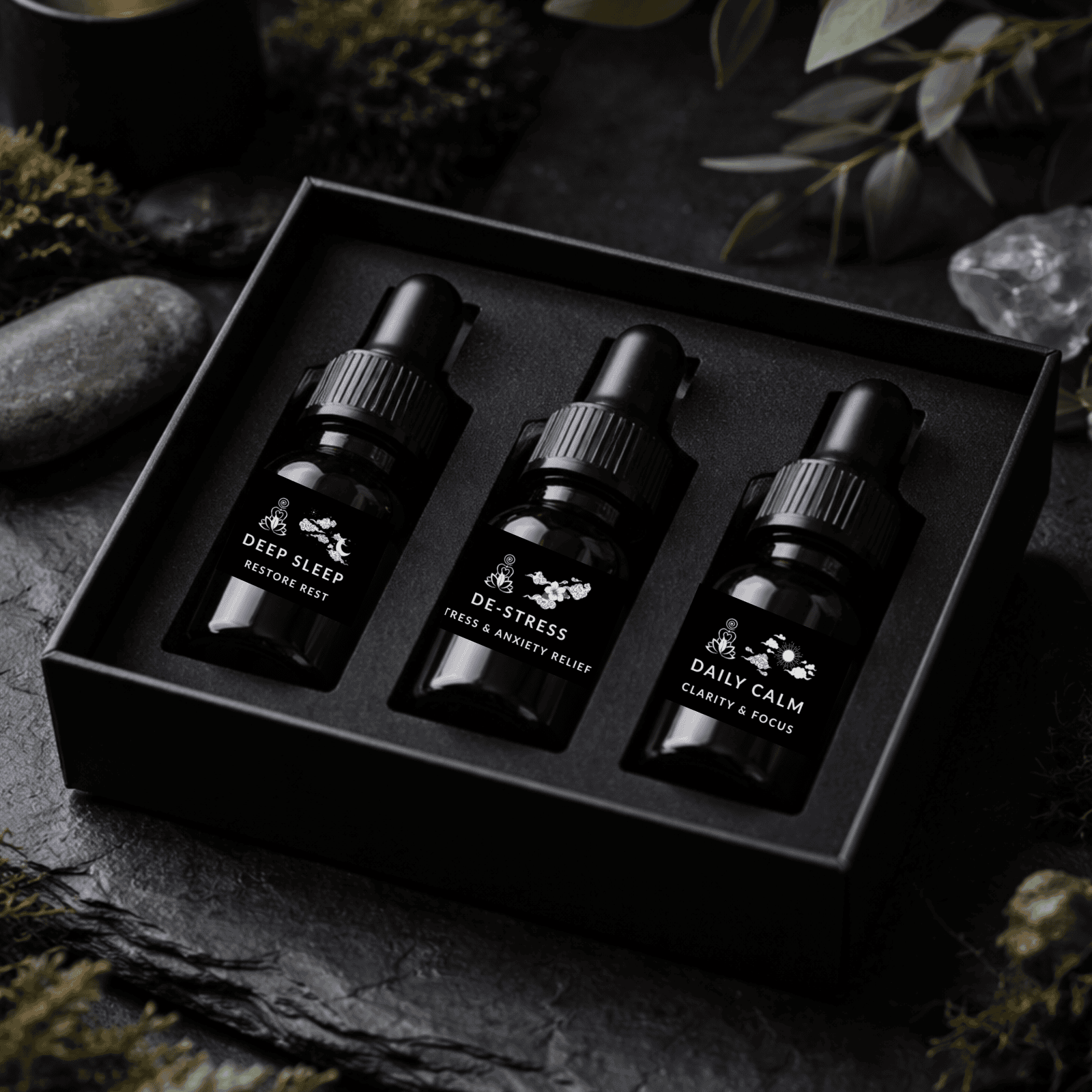 Every ritual is crafted with pure, therapeutic botanicals designed to calm anxiety, deepen sleep, ease stress, and gently guide the mind back to stillness bringing the body back into natural harmony.